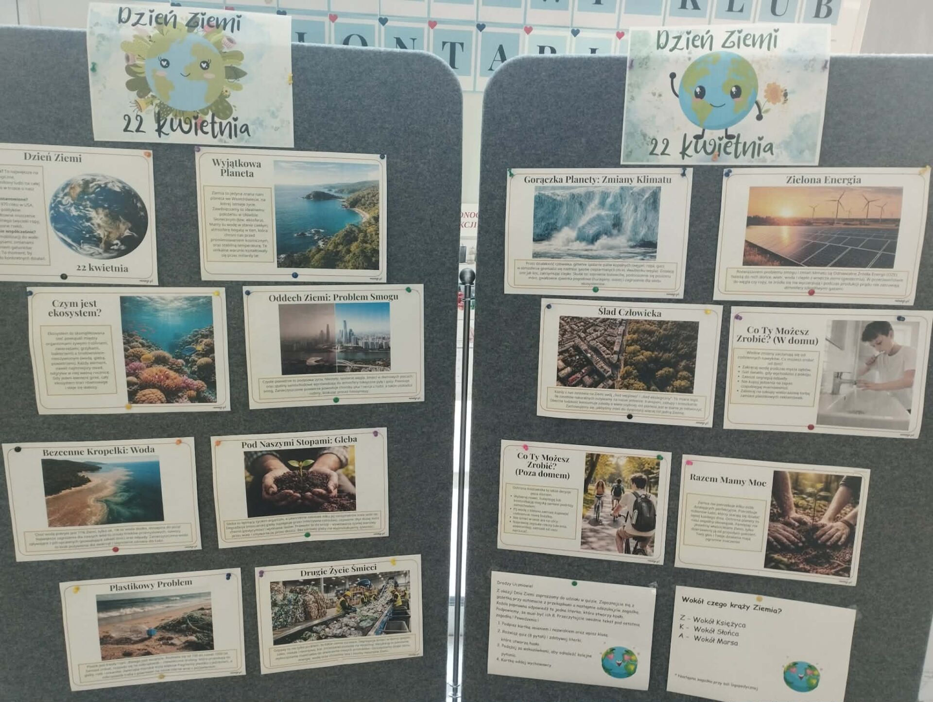 Z tej okazji przygotowana została gazetka tematyczna, która przybliżała zagadnienia związane z ochroną przyrody, ekologią oraz codziennymi działaniami na rzecz naszej planety. Uczniowie mogli również sprawdzić swoją wiedzę, biorąc udział w quizie o naszej planecie.