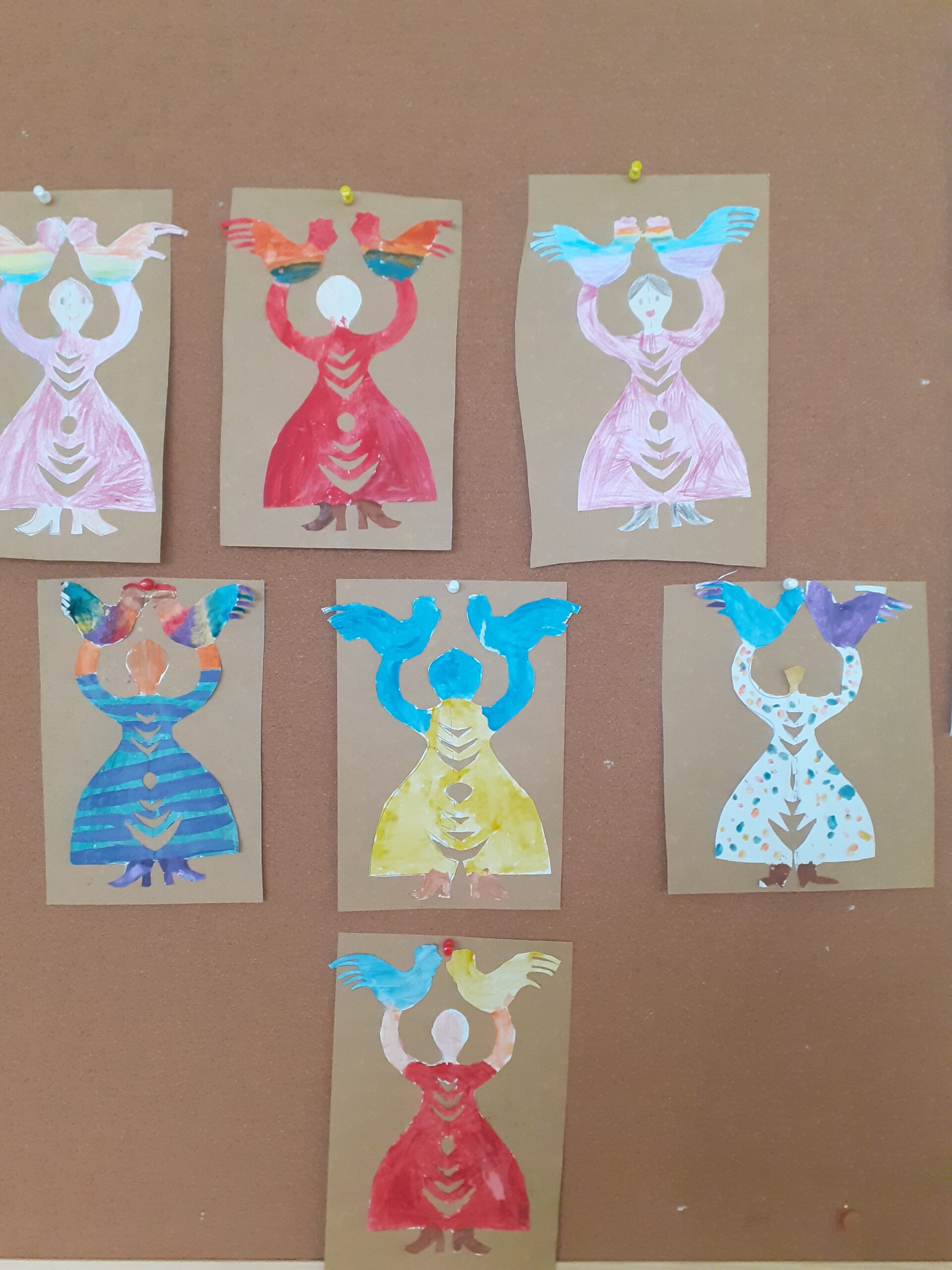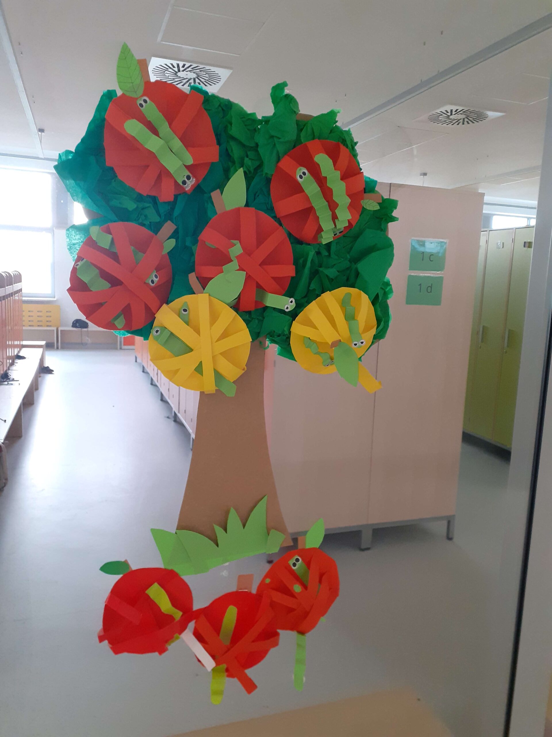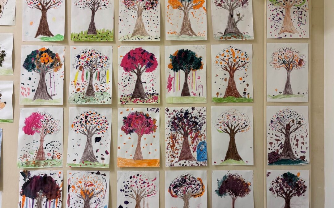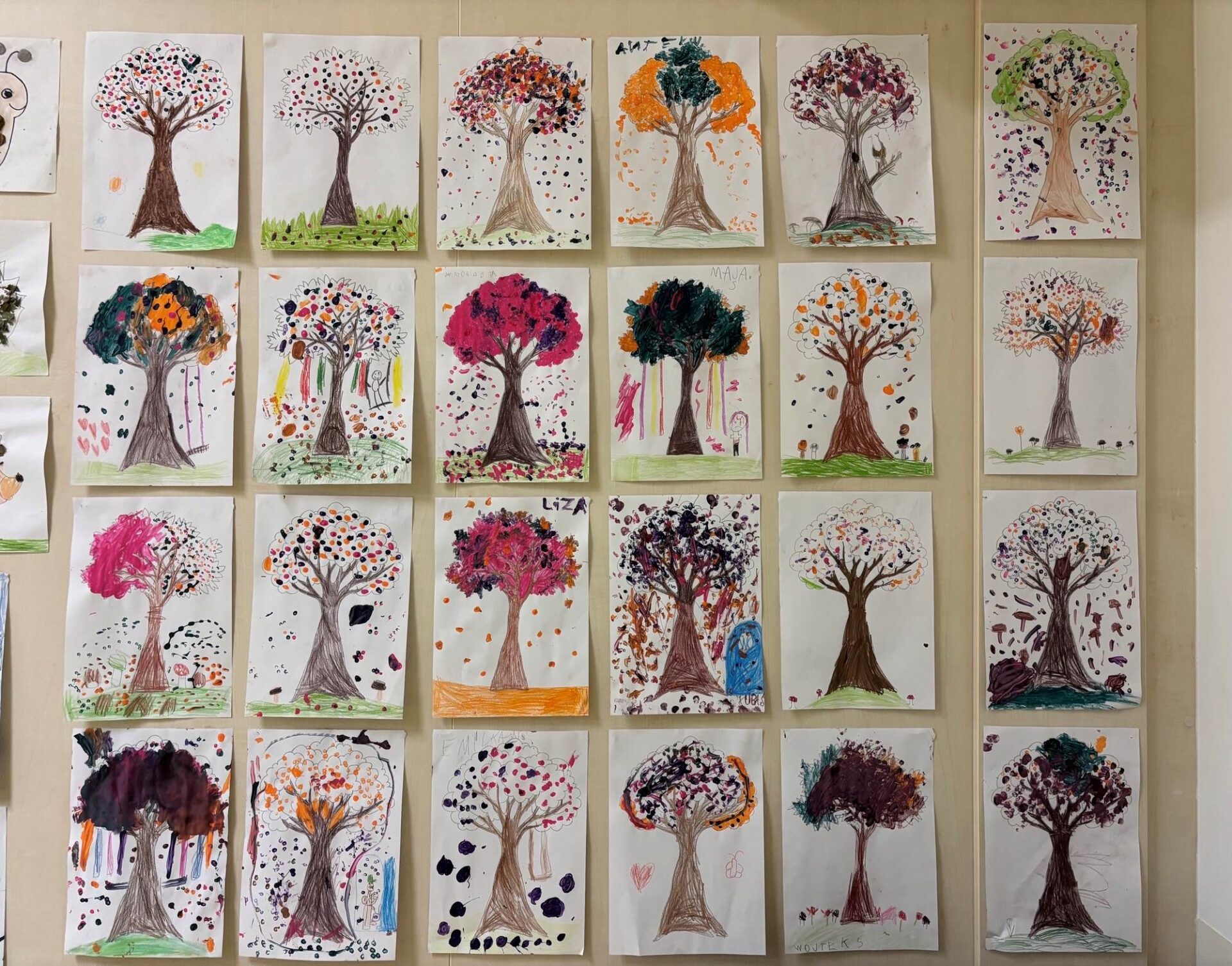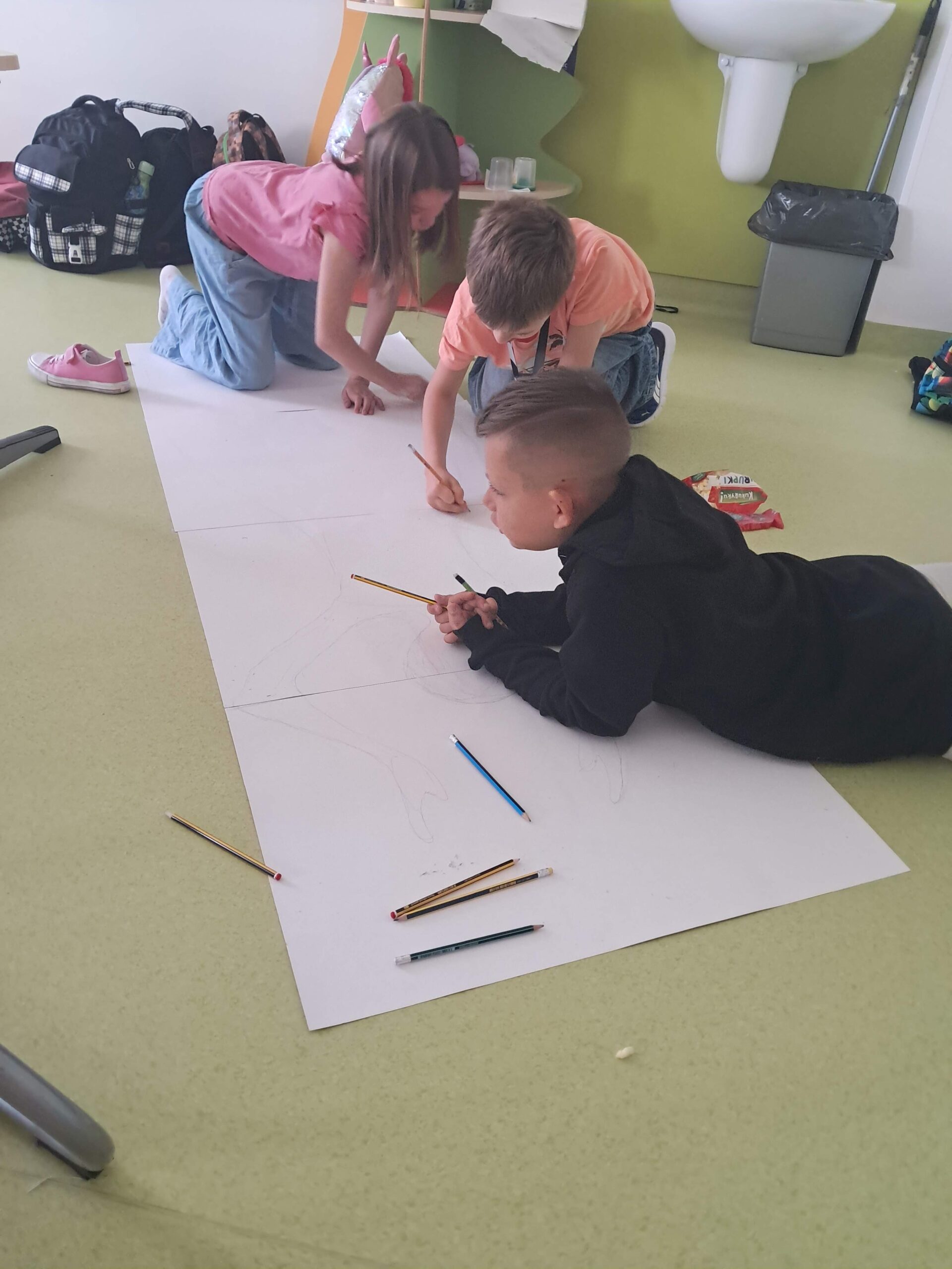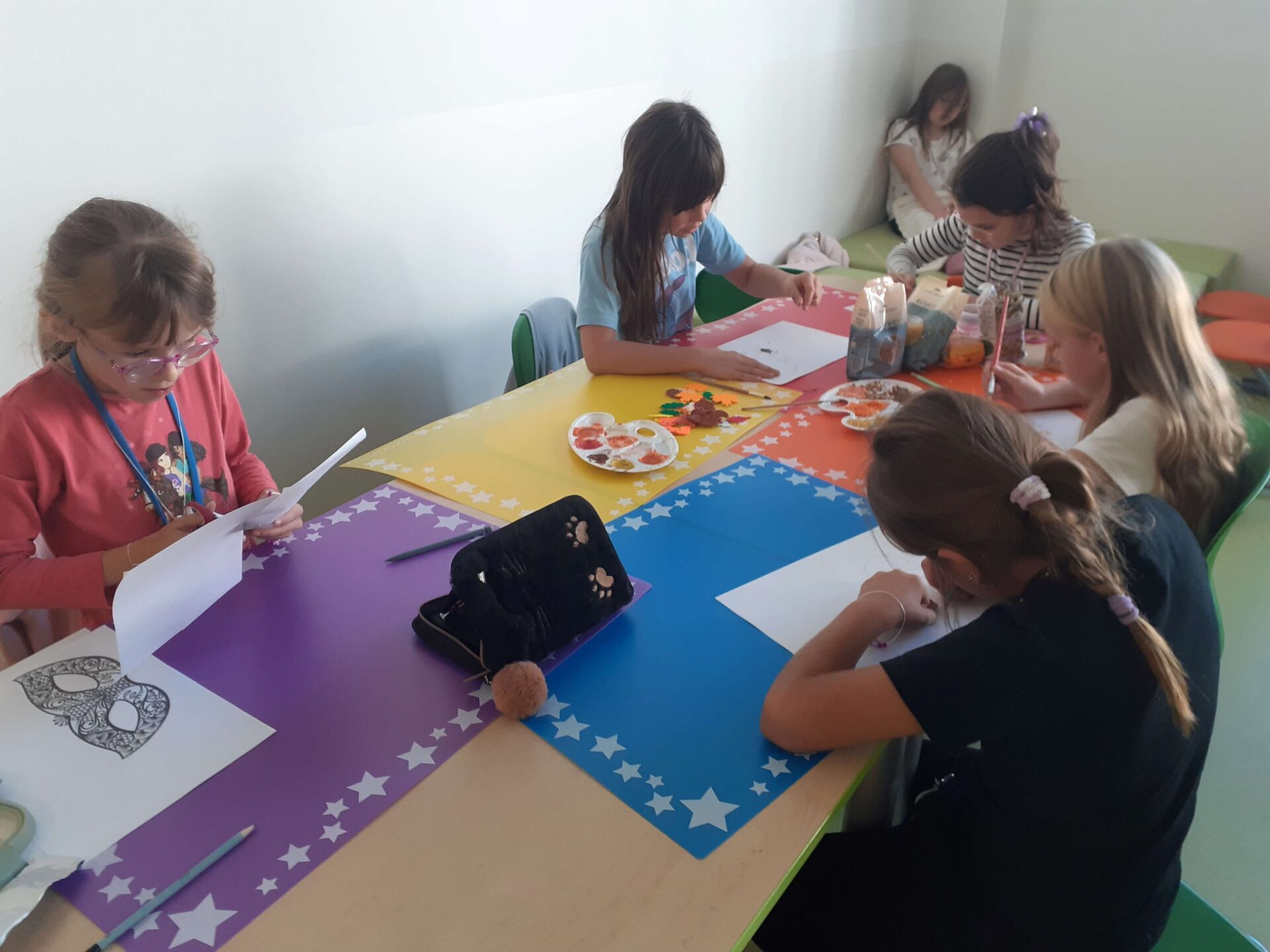 Za oknami feeria barw choć coraz mniej liści, mniej słońca, chłodniejsze i silniejsze podmuchy wiatru. Czuć prawdziwą jesień. Na szczęście w świetlicy atmosfera gorąca. W październik weszliśmy tanecznym krokiem. Mieliśmy przyjemność nauczyć się jednego z tańców pochodzących z regionu Mazowsza. Świetliczaki dowiedziały się więcej o naszej kulturze ludowej. Tworzyły również kolorowe wycinanki łowickie. Wśród prac plastycznych powstałych na początku jesieni wymienić można przygotowane przez uczniów drugich klas papierowe jabłuszka z robaczkami, które dumnie zawisły na drzewie zrobionym z papieru i krepiny. Bardzo ciekawy efekt przyniosło rozmieszczanie przez dzieci kawałków włóczki na konturach wydrukowanych darów jesieni – m.in. grzybów, żołędzi, jabłek, gruszek oraz kolorowanie całości. Jesienne drzewa pojawiły się na szarych talerzach – ich listki wycięte z kolorowego papieru mieniły się ciepłymi barwami. Natomiast drzewa pokryte farbą przez uczniów pierwszych klas zachwyciły swoją różnorodnością. W jednej z sal świetlicowych zawisły żołędzie zrobione ze styropianowych jaj pomalowanych na brązowo oraz ze sznurka, z którego uformowane zostały żołędziowe czapeczki. Również dzieci z trzecich i czwartych klas świetnie bawiły się przy tworzeniu Pani Jesieni, której kształt odwzorowywały na podstawie sylwetki jednej z uczennic. Jej suknię pokryły liście wycięte z kolorowego papieru, a włosy powstały ze sztucznego siana.