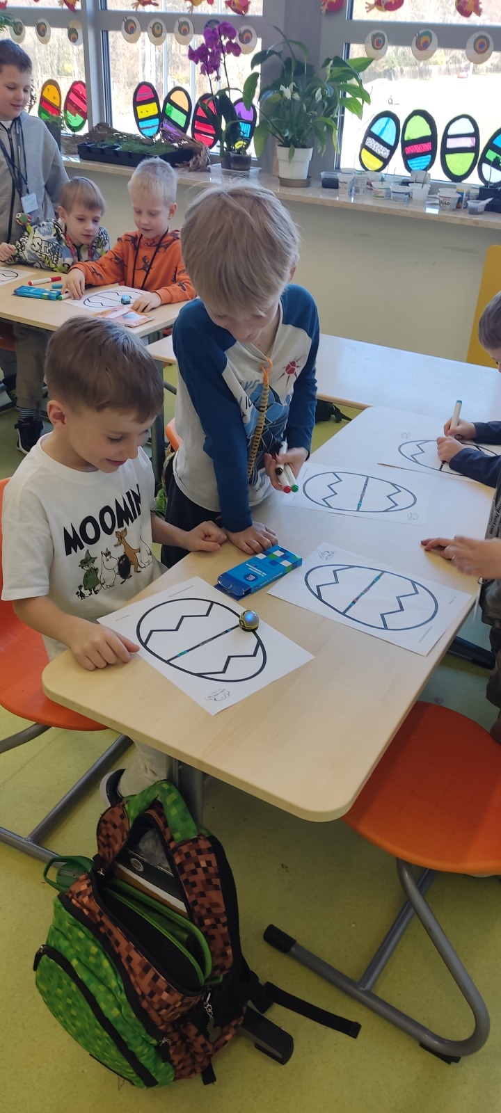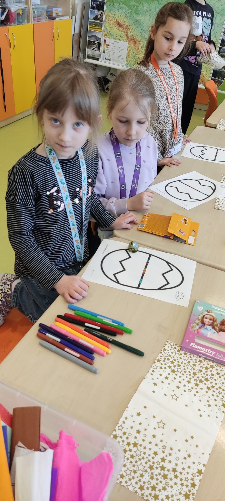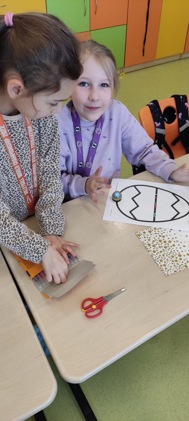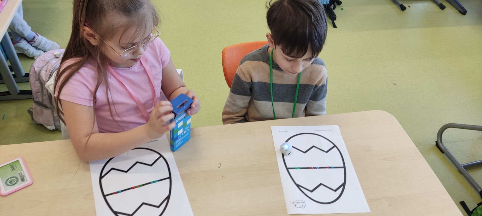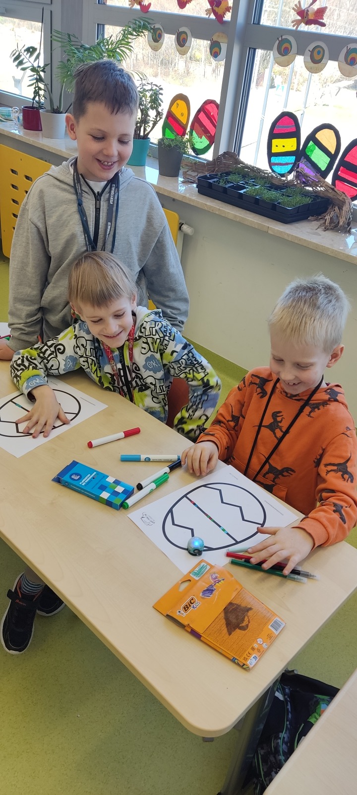 Kolejnym etapem były pierwsze kroki w kodowaniu z wykorzystaniem Ozobotów, czyli małych robotów reagujących na kolorowe kody. Uczniowie tworzyli własne trasy, testowali komendy i obserwowali, jak ich pomysły ożywają w działaniu. To świetne połączenie nauki i zabawy, które rozwija kompetencje przyszłości.