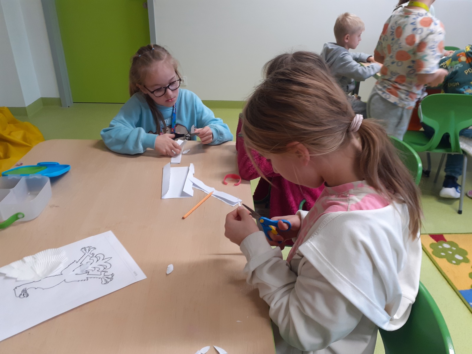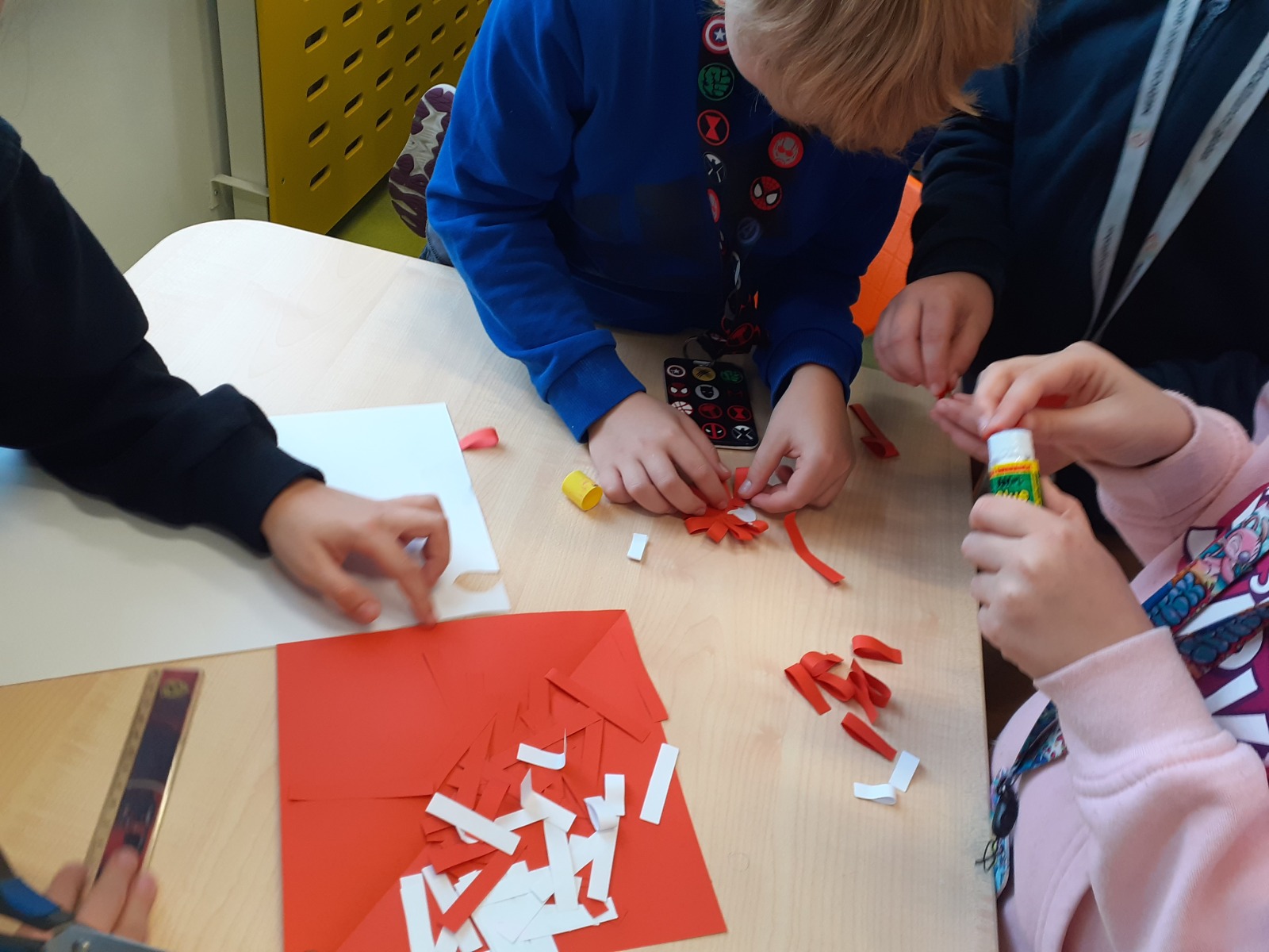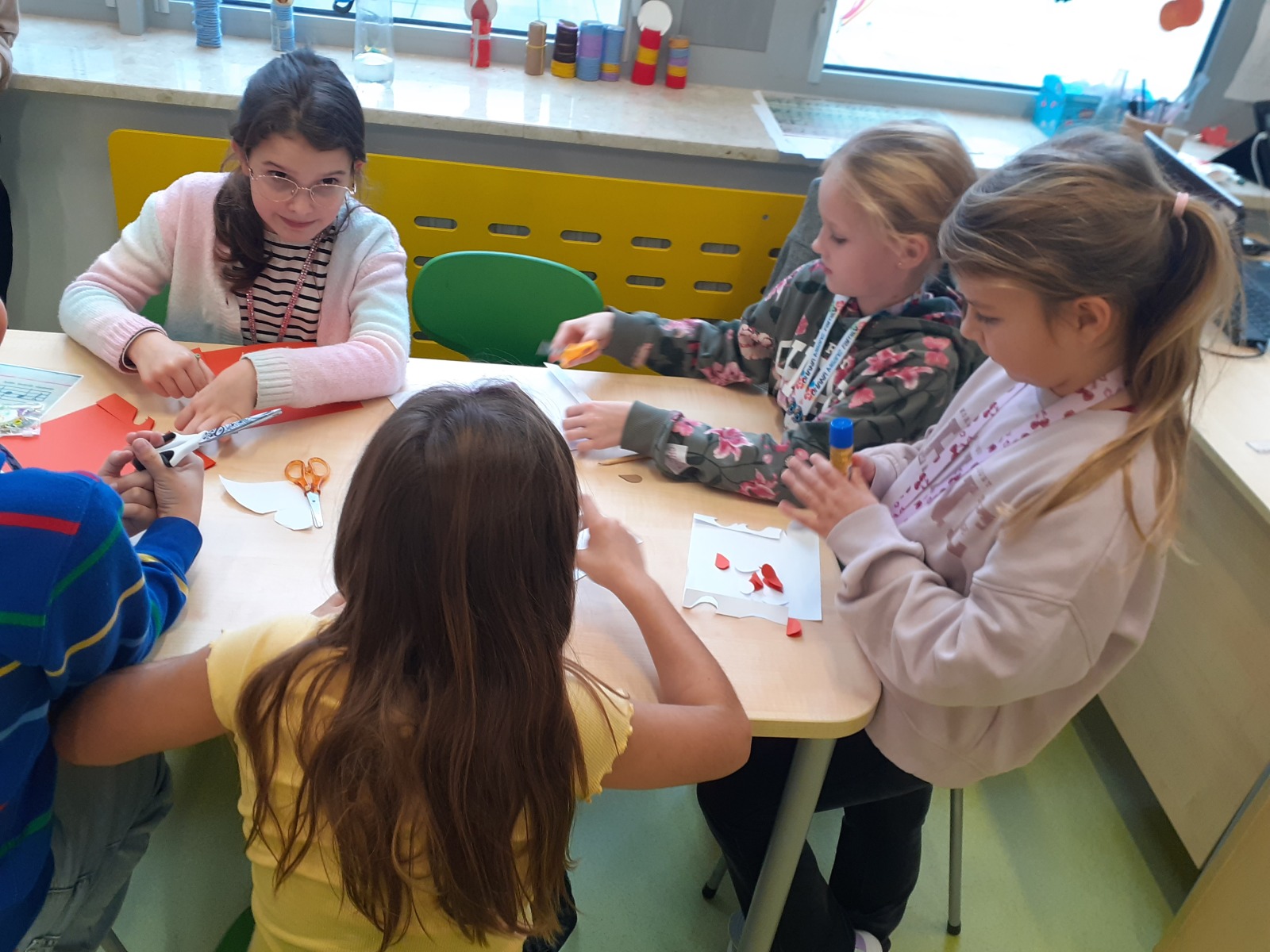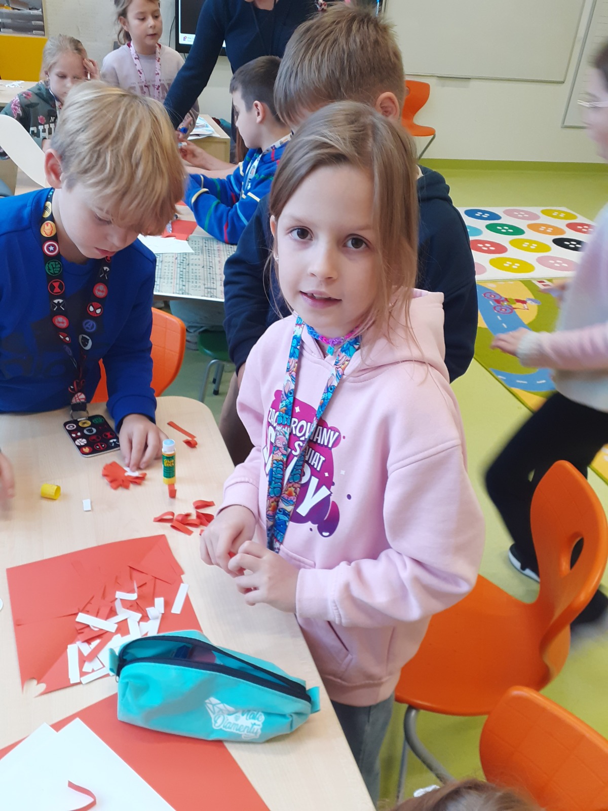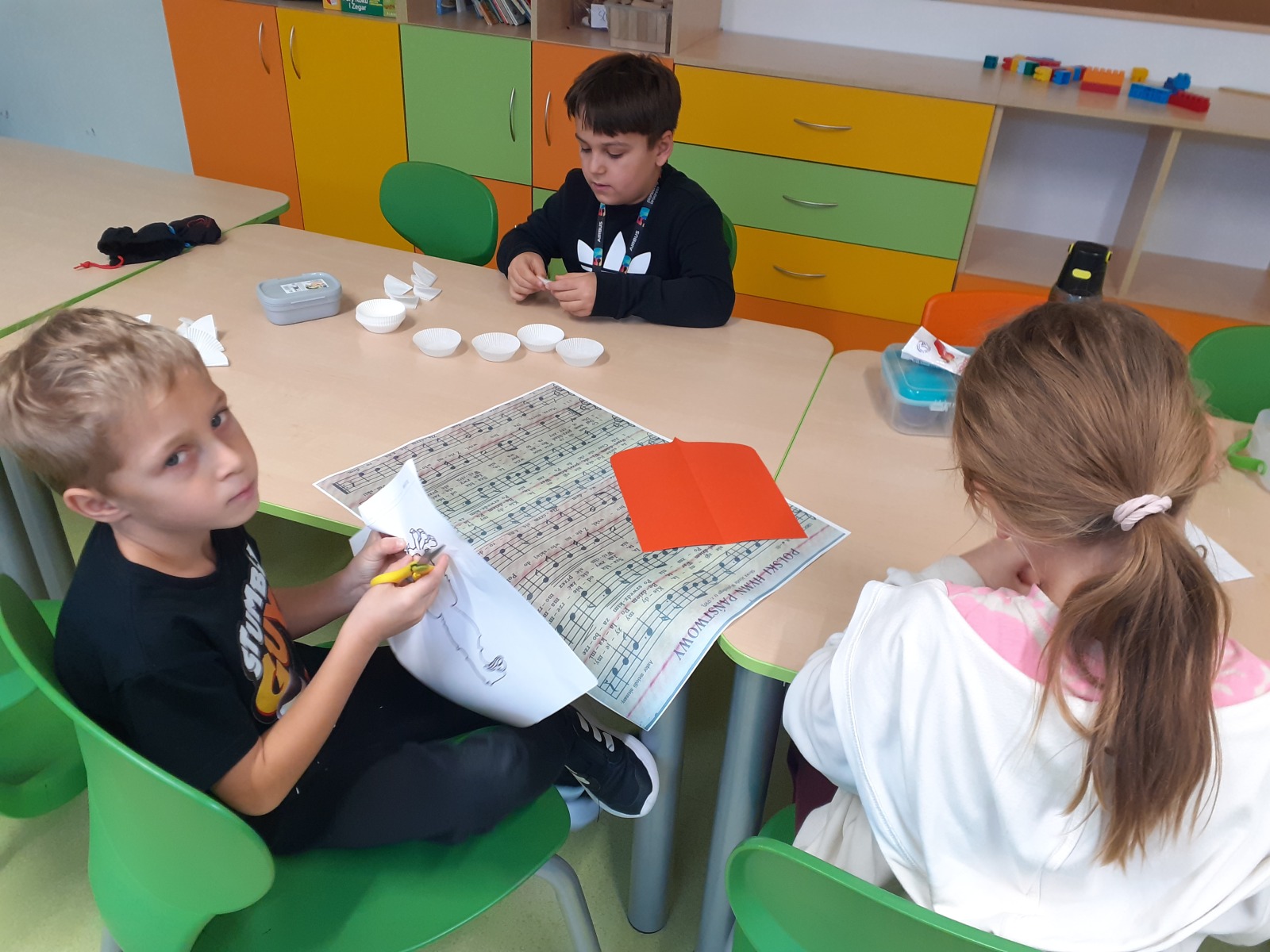 Za nami Uroczystość Wszystkich Świętych wraz z Dniem Zadusznym oraz Narodowe Święto Niepodległości. W świetlicy dzieci z zaangażowaniem uczestniczyły w rozmowach dotyczących sposobów spędzania tego wyjątkowego czasu w ich domach. Chętnie dzieliły się swoimi wspomnieniami o bliskich zmarłych, mając ich w sercu i pamięci. Przygotowały znicze w różnych odsłonach: wycięte z papieru, w formie intensywnie kolorowych witraży a także z rolek papieru ozdobionych sznurkami. Oglądały również filmy edukacyjne pogłębiające ich wiedzę dotyczącą wspomnianych tematów, m.in. materiał poruszający genezę powstania oraz znaczenie Grobu Nieznanego Żołnierza. W ramach kącika czytelniczego zapoznawały się z informacjami o bohaterskich postaciach. Z ochotą wypełniały karty pracy oraz w skupieniu odśpiewały hymn „Mazurek Dąbrowskiego. Drugoklasiści wykazali się imponującą znajomością wydarzeń historycznych związanych z odzyskaniem niepodległości i znaczeń symboli narodowych. Dzieci przygotowały również prace plastyczne przedstawiające orły w koronie. Część drugoklasistów, wykorzystując różne materiały, m.in. wełnę, kolorowy papier, papilotki, kredki, utworzyła trzy plakaty przedstawiające flagę Polski, rozety, biało-czerwone kotyliony, godło Polski oraz mapę Polski, umieszczone na tle wydrukowanych nut polskiego hymnu narodowego.