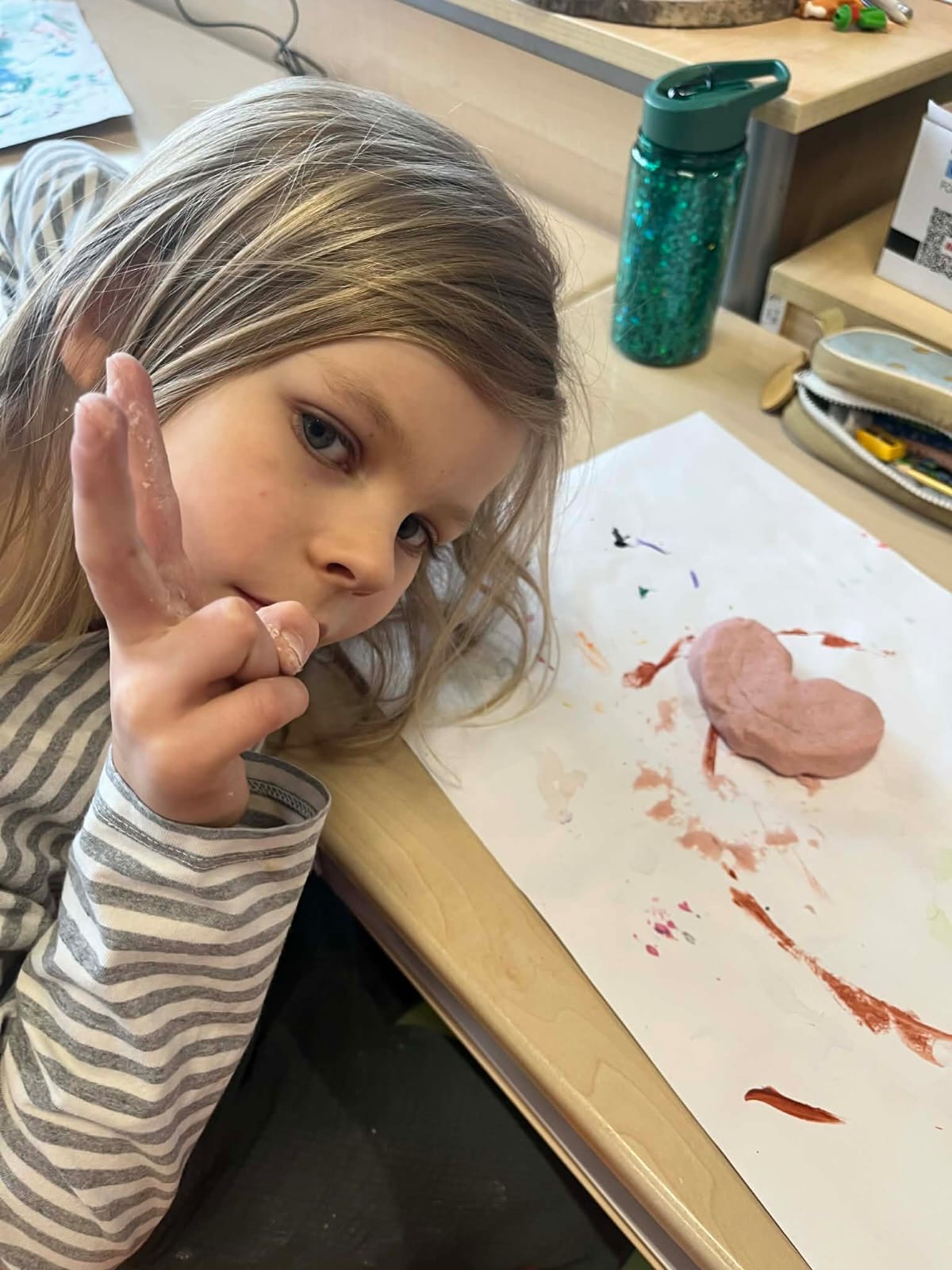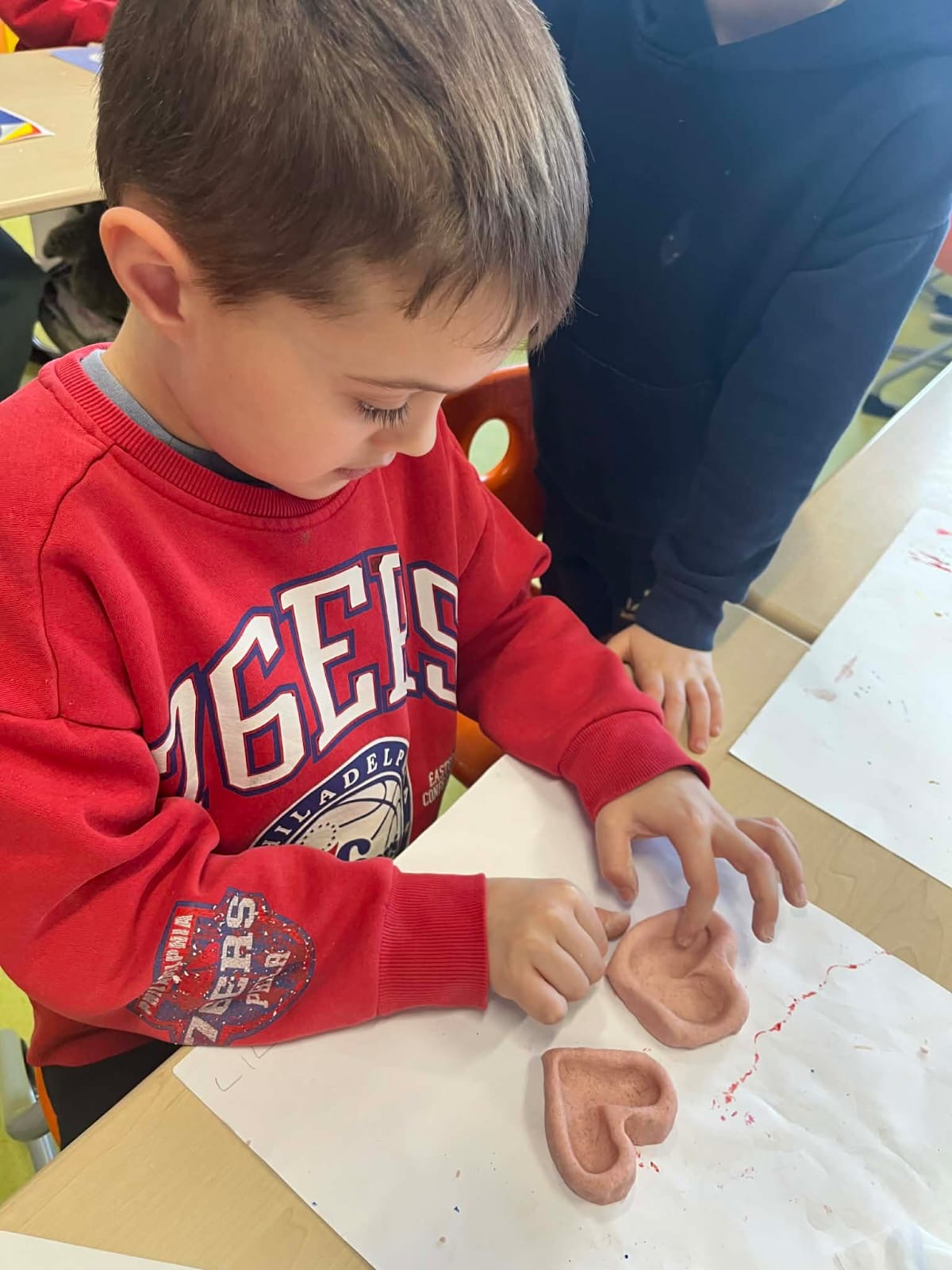 Podczas zajęć plastycznych dzieci lepiły serduszka i inne walentynkowe ozdoby z masy solnej. Powstały piękne, kolorowe prace, które po wyschnięciu stały się wyjątkowymi pamiątkami lub prezentami dla bliskich osób.